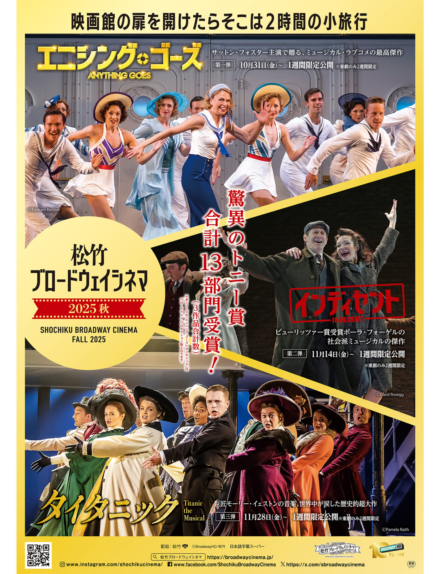「松竹ブロードウェイシネマ 2025 秋」は、全国各地の映画館で上映予定です。詳しくは公式ホームページ、上映される各映画館のホームページをご覧ください。松竹ブロードウェイシネマの公式HPはこちら