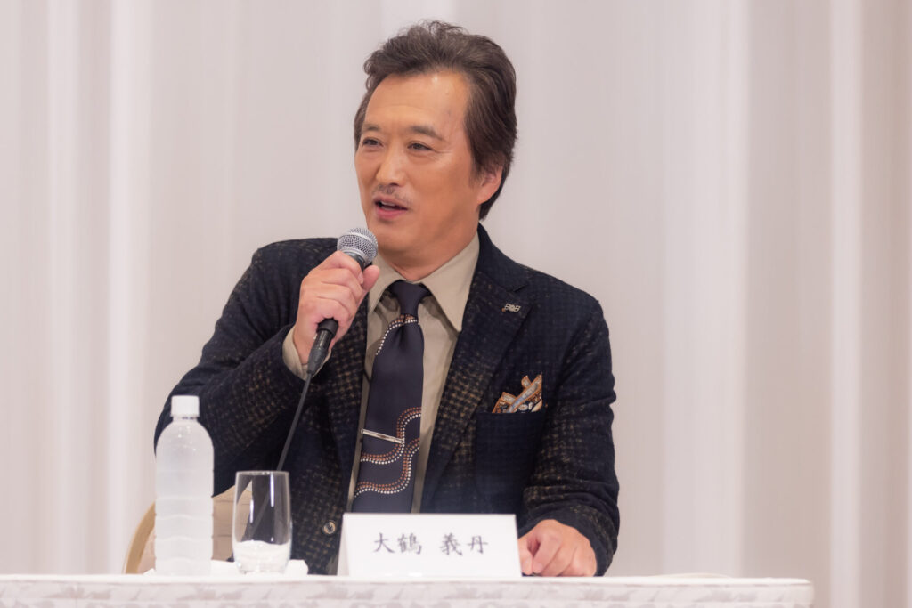 松永の兄貴分・岡田を演じる大鶴義丹さんは、「戦争でみんなが等しく傷ついて、そこから新しい世界に向かおうという中、私1人だけが“そんなのは認めない”と全員の邪魔をする悪魔的な存在です。恐ろしく演じられれば、より対照的に、新しい世界に向かいたいという光が輝くんじゃないかと思い、一生懸命、真っ黒くやっております」と作品での役割について語りました。