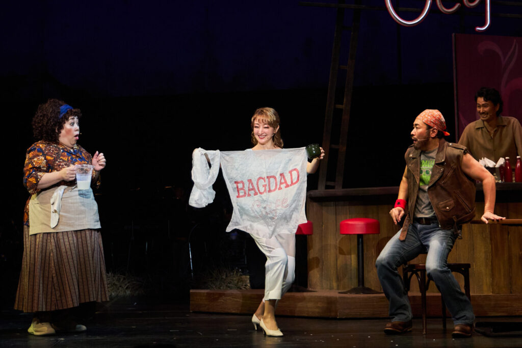 またシアタークリエらしい、客席通路を使ってバグダッドの空気に包んでいく演出も。本作の独特ながら緩やかで温かい世界観に劇場全体が包まれていきます。