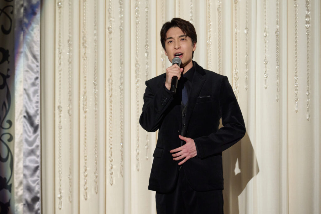 まず披露されたのは、岡宮来夢さん演じる小林一茶が歌う「露の世は」。モーリーさんが本作を創作するきっかけになったという俳句「露の世は露の世ながらさりながら」 を、美しいメロディーで描き出します。一言一言を噛み締めるように歌い、和と洋が混じり合う世界観を一気に表現した岡宮さん。