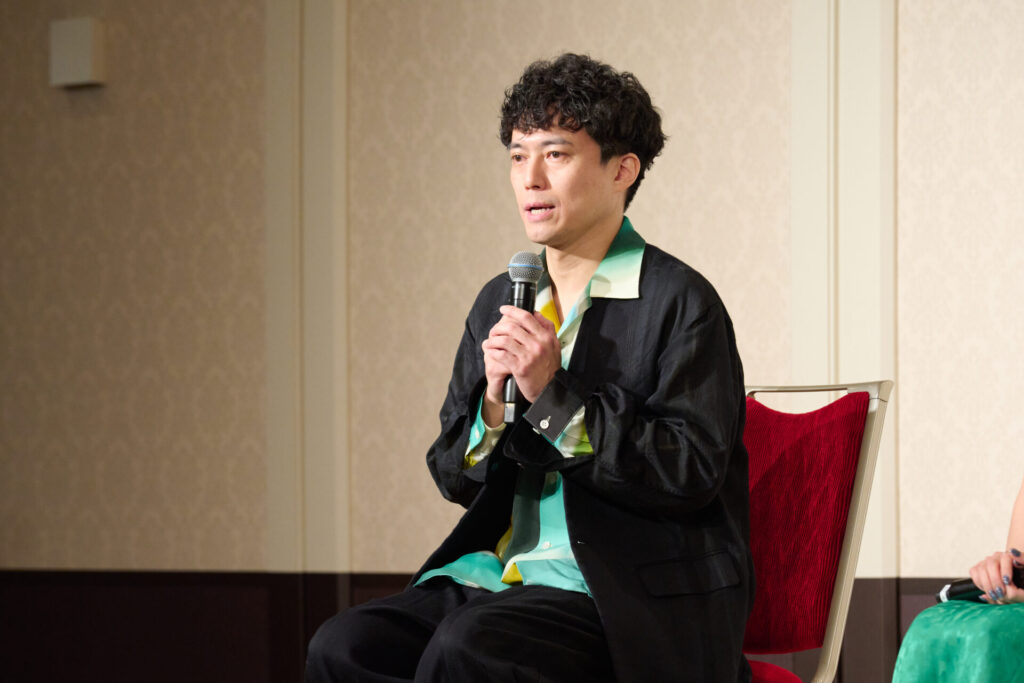 また繊細さという点では各役者が「まだ誰も演じたことのない人物を想像力で作り出していく、繊細で非常に乗り越え甲斐があるお仕事をされている」と語り、「豊原さんは新しい女性像であるとともに、本当はいたけれども、歴史上現れない女性の姿なのではないかというのを、芝居から感じているところです。潤花さんは移民の姿、誇り高さと、今少しずつ声を上げている姿をまさに体現なさっている。来夢くんは、こんな一茶がいて良いのかという一茶になると一緒に作品を作っていく意義があると思うし、その瑞々しさが生まれ始めている。海宝くんは、音楽を作る、クリエイトしていくという姿が、ハムレット…とは言いませんが、海宝くんにしか演じられない海人像が少しずつ息づいていて、弱さ、強さを含めてお客様の共感を呼ぶんじゃないかとワクワクしています。俳優の繊細な機微をキャッチしながら稽古を進めていきたい」と語りました。