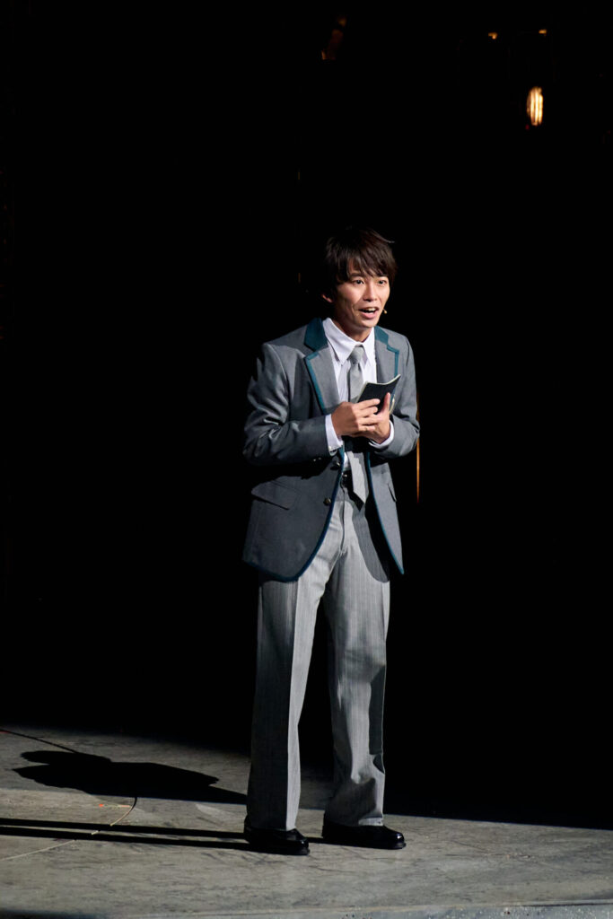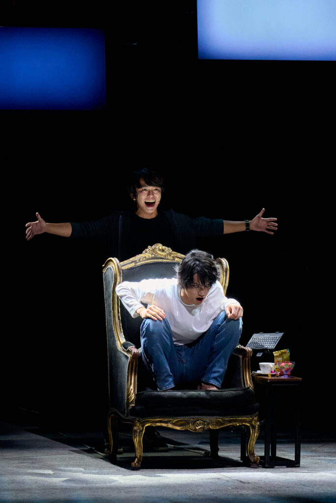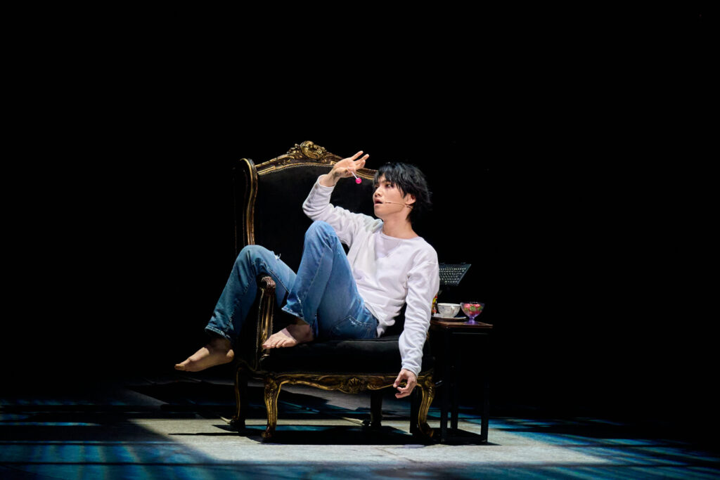 三浦宏規さんは身体能力・柔軟性の高さ、独特な語り口でLの特異な雰囲気を表現。猫背で歌い上げるというミュージカル作品において非常に難解な役ですが、平然とやってのける姿には三浦さんが積み重ねてきた研鑽の確かさを感じます。