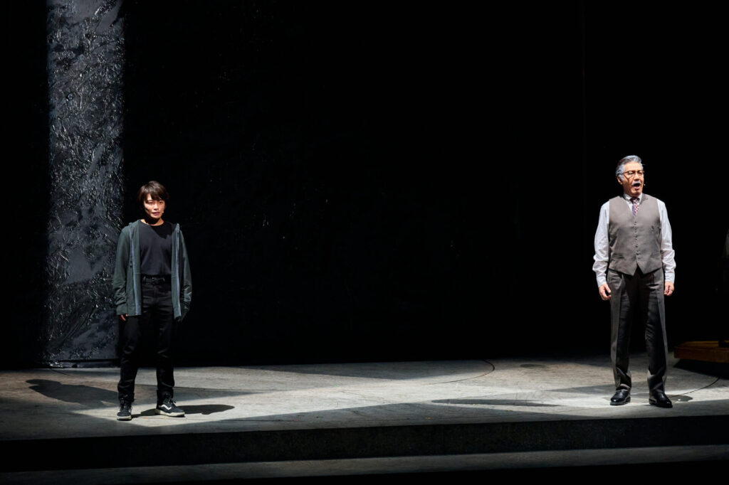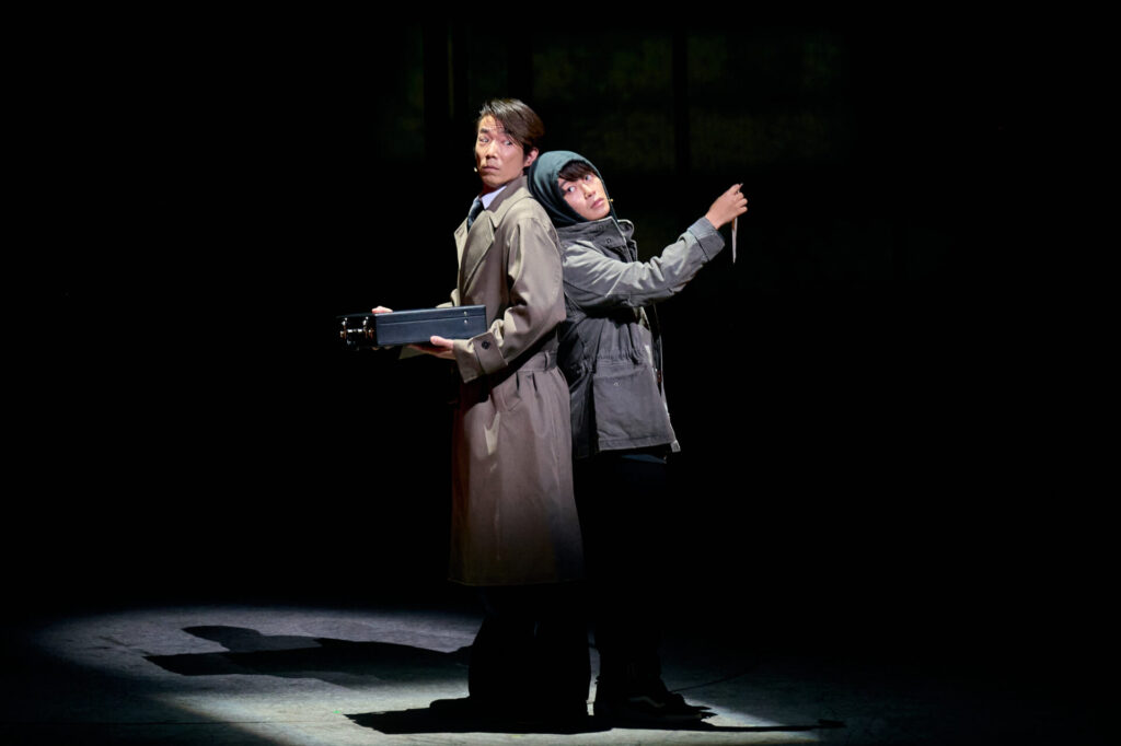 浦井さんは、退屈と愉悦の間を漂うような怪しさを軽やかにまとい、現実と虚構の境界をひょいと超えてしまうような存在感を発揮します。本作のダークな世界観を劇場全体に染み渡らせていくようです。