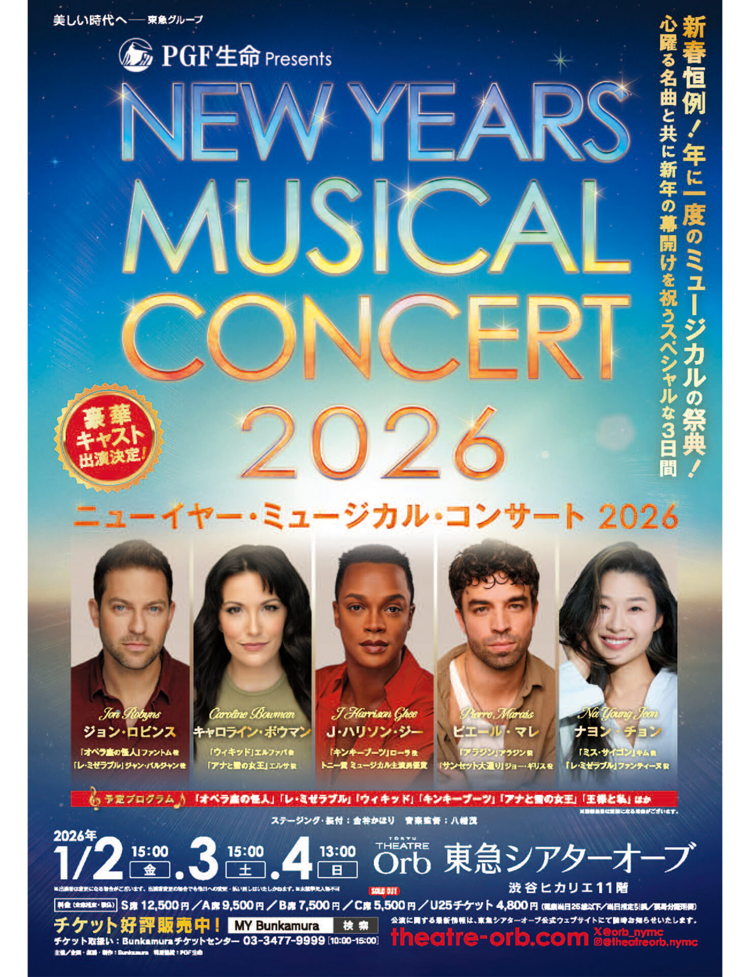 『PGF生命 presents ニューイヤー・ミュージカル・コンサート2026』は、2026年1月2日(金)~4日(日)に東京・東急シアターオーブにて上演されます。3回のみの貴重な公演ですので、気になる方はぜひお早めにチケットをご購入ください!公式ホームページはこちら