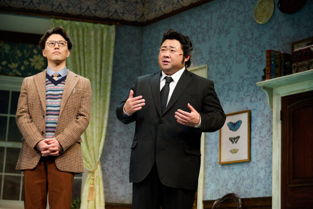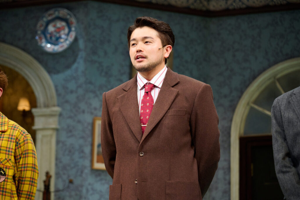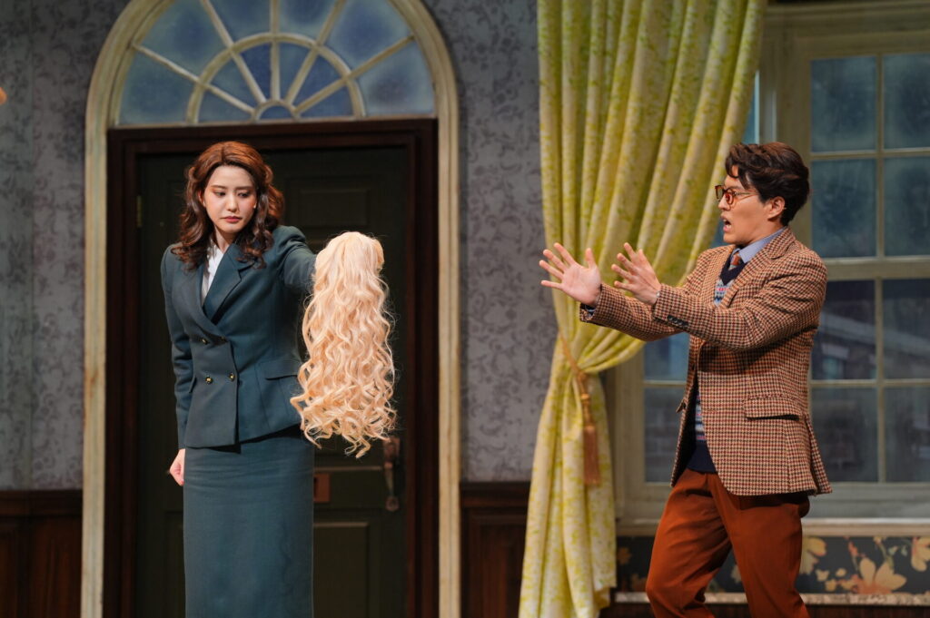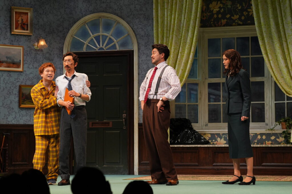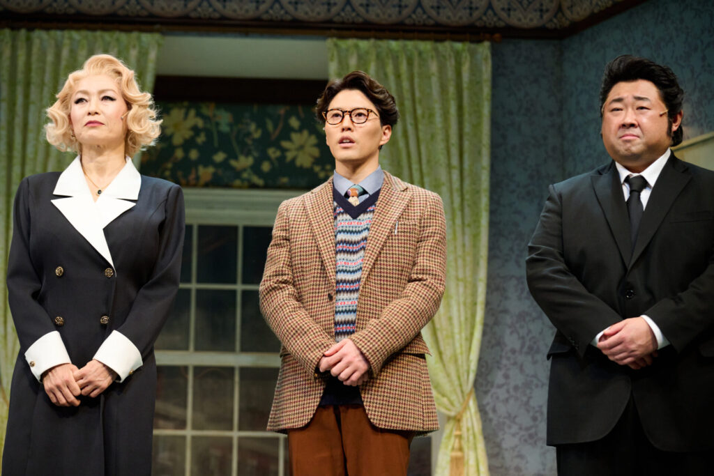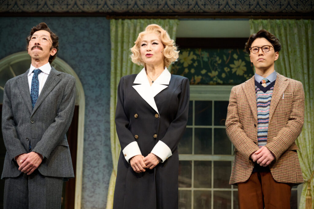 社会保障省の主任調査官ミズ・クーパーを演じる明星真由美さんは「込み入った台本で、嘘が折り重なっていくんですけれど、お客様が本当によく理解されていて、ここで笑えるんだなというのを改めて初日に自分で確認し、凄く素敵な初日を迎えました」と振り返ります。