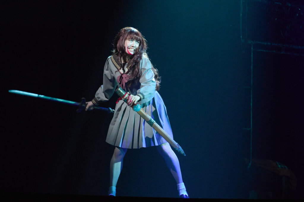 加藤さんは「最初に大きな妖魔と戦うシーンで、舞台上全部を使って戦いながらとんでもない歌を歌うという(笑)。そこを頑張ってきたので見ていただきたい」とアピール。「演劇的に人力を使って表現していること、そしてお客様に想像していただいて、全てが完成する作品になっているところがすごく面白いし、やっていても楽しいなと思うところです」と魅力を語りました。