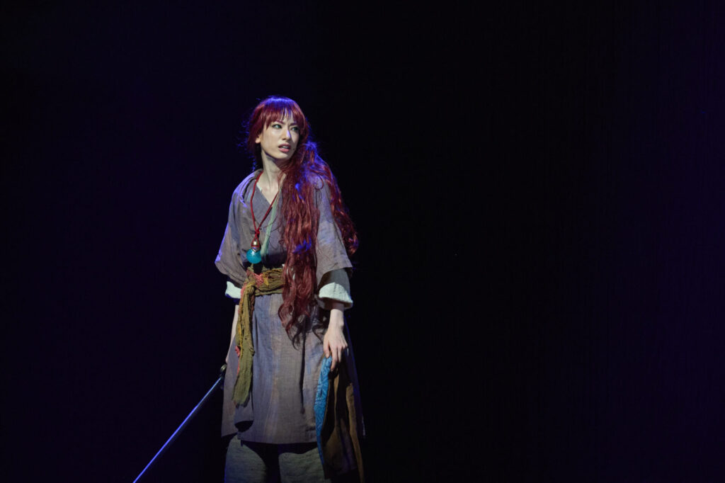 柚香さんが圧巻の殺陣裁きを見せながら、加藤さんが陽子の心情を切々と歌い上げ、2人が向かい合い言葉を交わすことで陽子の心の葛藤を表現。