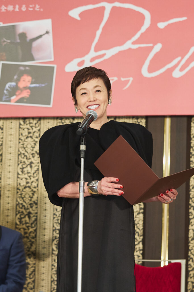 「ピアフの“あたしが歌うときは、あたしを出すんだ。全部まるごと”という台詞が大好きで、今回も1回1回全力で演じていきます」と意気込みを語った大竹さん。「ピアフをやっていて、歌の素晴らしさ、歌の持つ力というのを教えられました。歌うことは祈りに近い。客席に向かって歌っているのではなく、天と地を結ぶ役目が歌にはあるんだなというのをピアフに教えられました。あと必死に生きる、必死に愛するということもなんて素敵なんだろうと思います」と作品の魅力を語ります。
