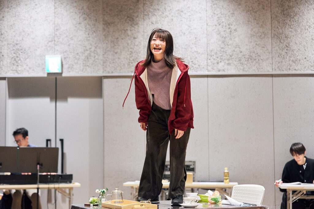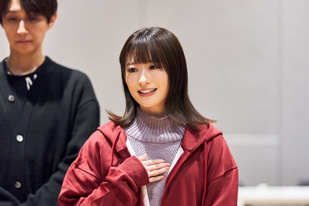 屋比久「自分の気持ちを作りながら正面を向く難しさがあるもんね。今回は元吉さんの演出の方針としても、“ここに絶対立ってください”ということがなく、余白をたくさん残してくださっているのですごく感謝しています。その日の感情によって動いていける部分が多いので、その時のふうかを見て、近づきたくなる日もあれば、近づきたくない日もあるし、それによって動きは変わってきます」