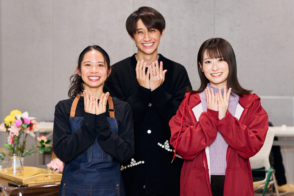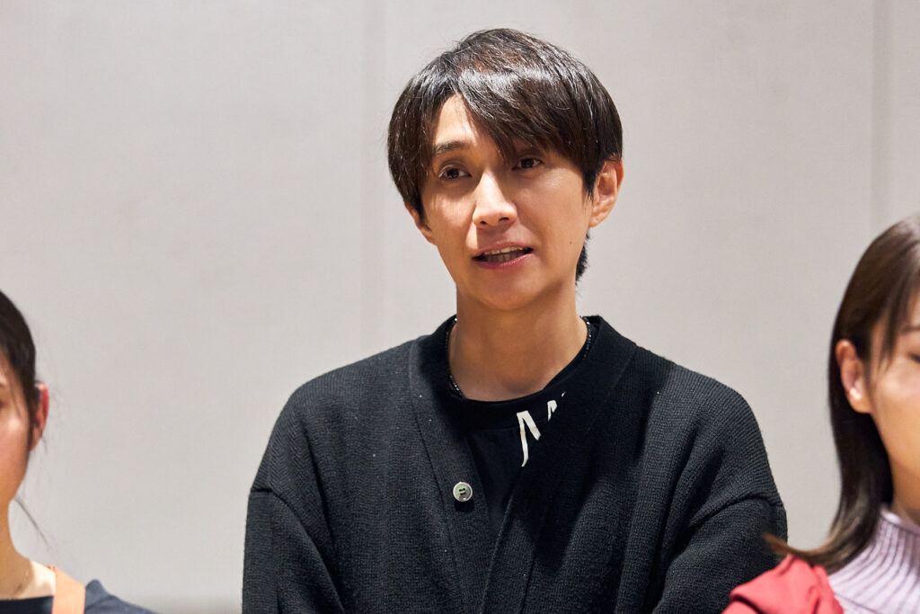 稽古場シーン披露後は、屋比久知奈さん、唯月ふうかさん、元吉庸泰さんへの合同取材が行われました。