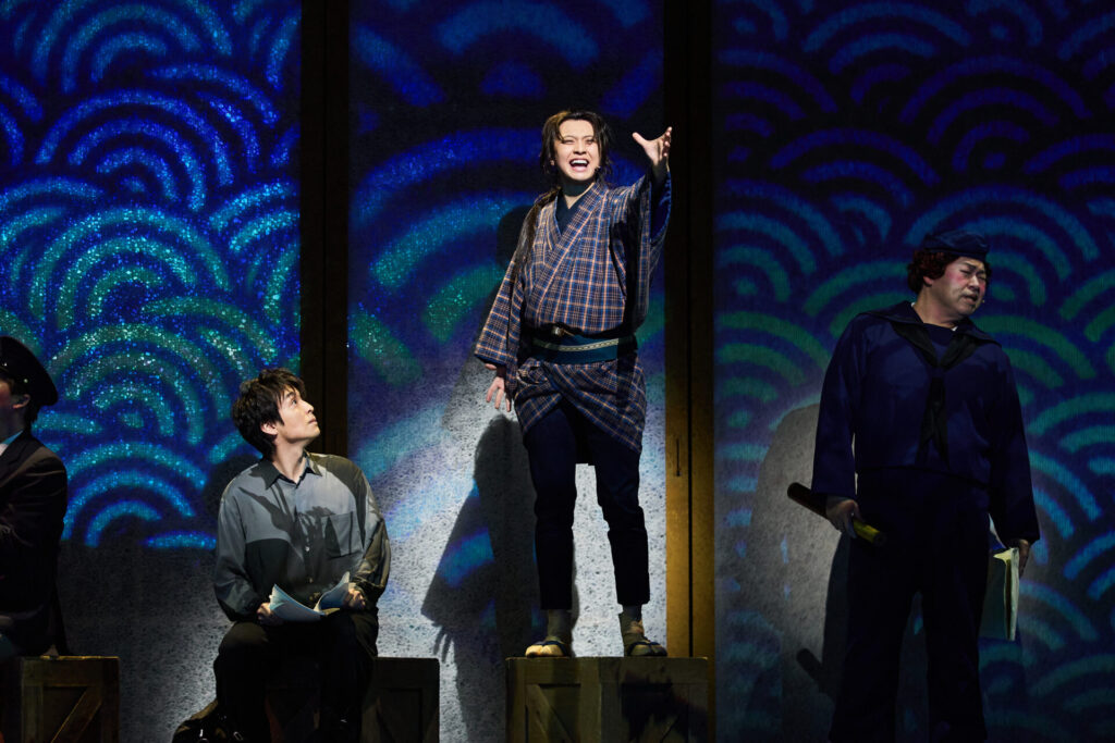 現代を生きるシンガーソングライター大町海人を演じる海宝さんは、自然体な佇まいながら、冒頭「TALK TALK TOKYO」から圧巻の歌唱力で惹きつけます。自分らしさとは何か。母の息子としてではなく、自分らしい音楽を創るにはどうしたら良いのか。悩みもがき、苦しみながら小林一茶の旅路を辿っていく等身大な姿に、観客は自然と感情移入していくことでしょう。