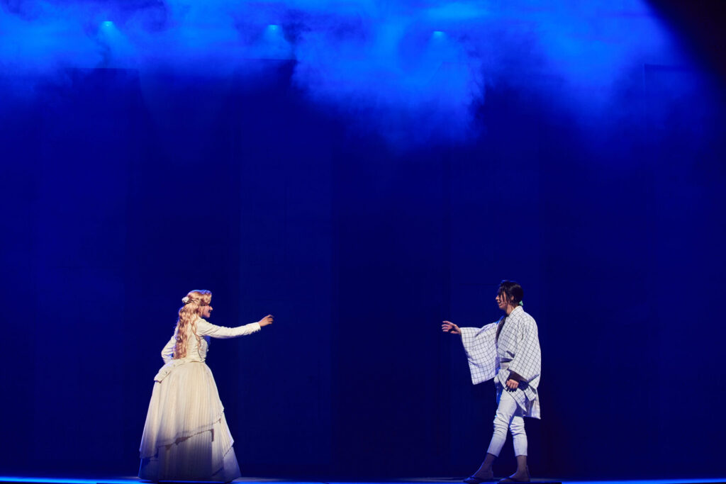 セットや衣裳でまさに「魔法のよう」に、時代が混じり合っていく美しさ。さらに小林一茶の俳句の数々が、一茶と海人の旅路に重なり、俳句の奥深さにも触れることができます。