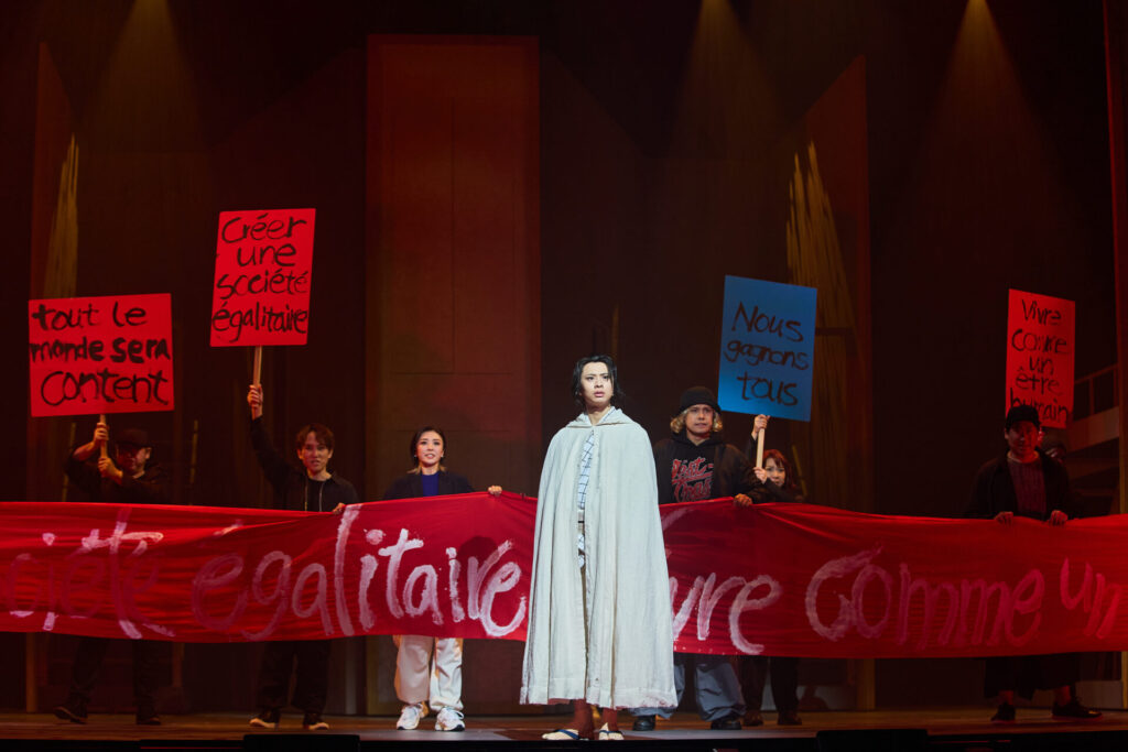 一茶はパリで舞台女優として活躍しながらも裏で革命家として動くテレーズと出会います。豊原江理佳さん演じるテレーズは高音が印象的な楽曲を中心に、これまでの革命家のイメージとは異なる、柔らかさの中に強さがあるキャラクターに。