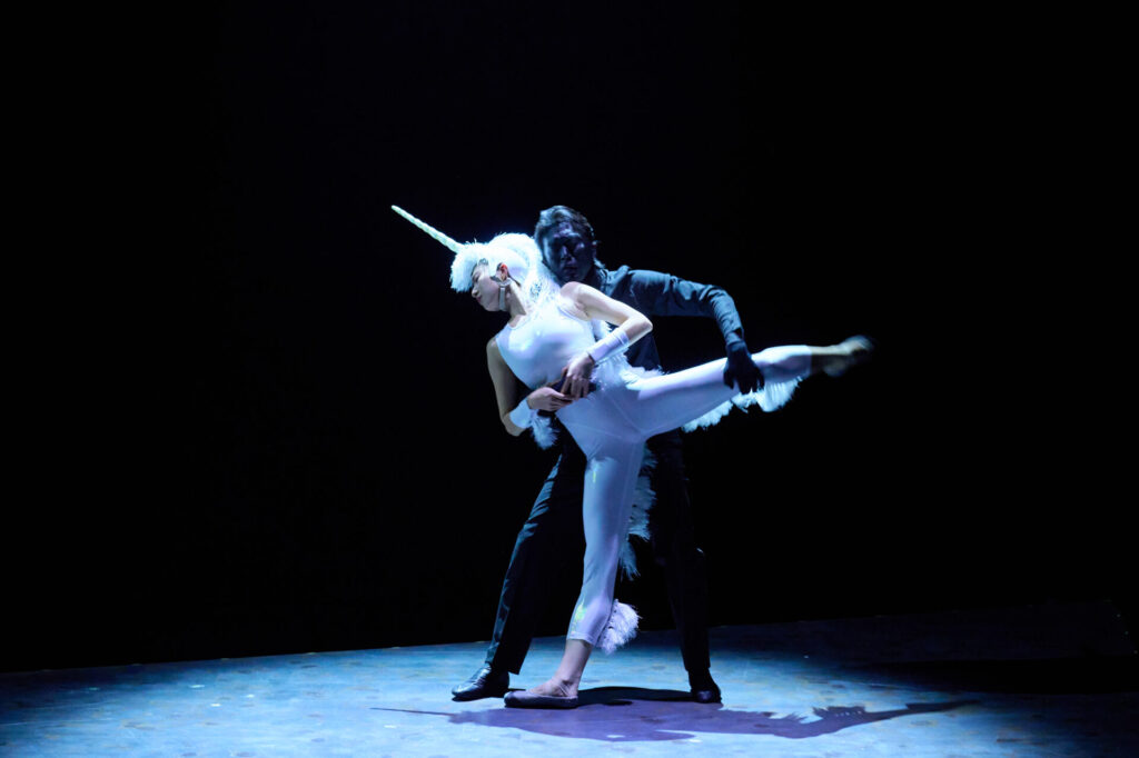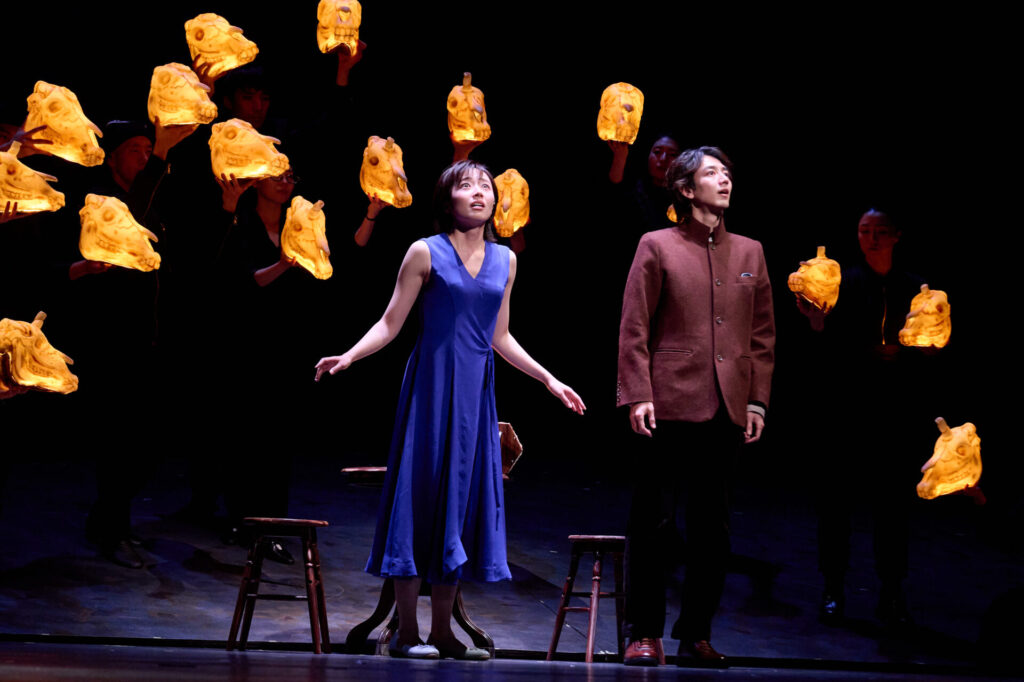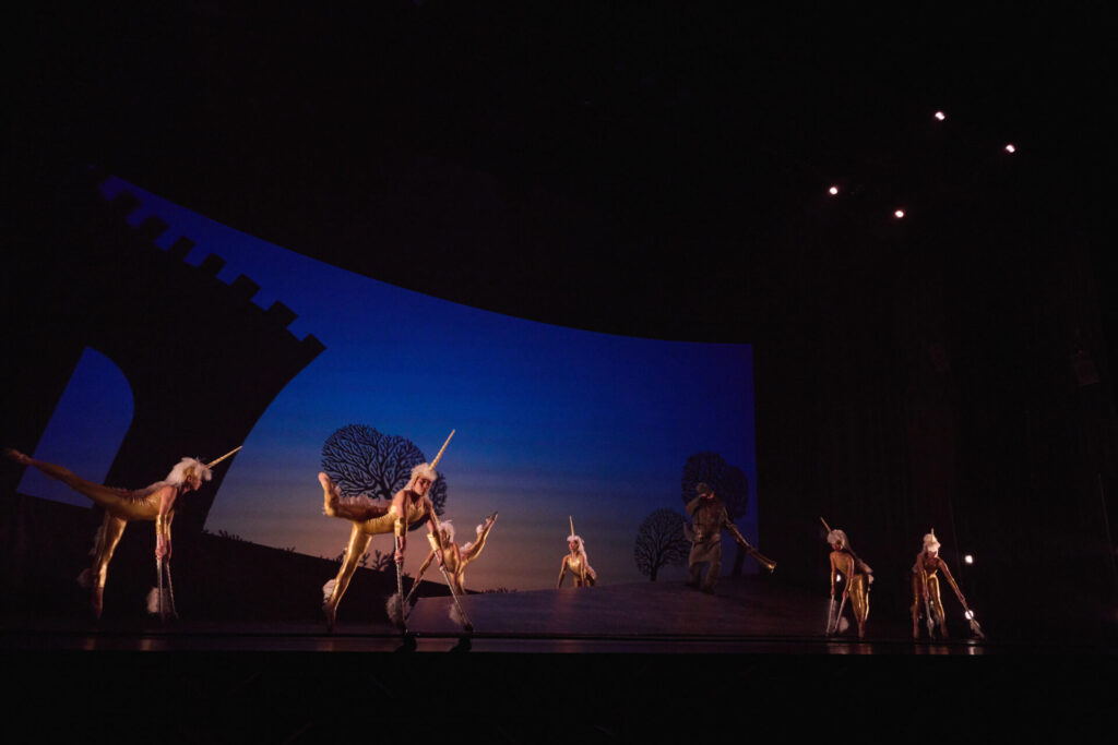 開演前からピアノの生演奏が行われ、劇場内に静かに本作の世界観が満ちていきます。そして現れたのは、“世界の終り”で生きる門番と一角獣。幻想的な世界へと一気に誘われます。