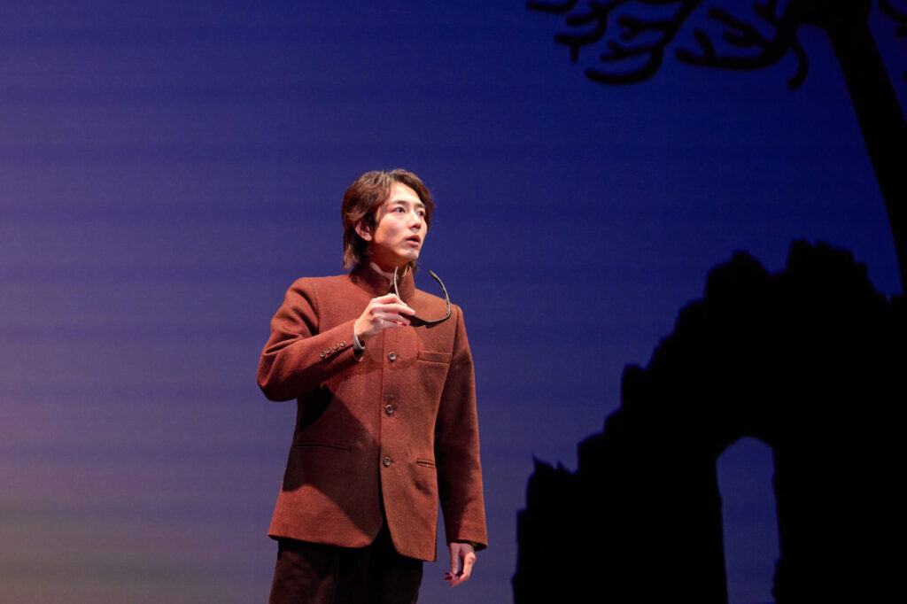 周囲を高い壁に囲まれ、決して外には出られない街。そこで“僕”(駒木根葵汰さん。島村龍乃介さんとのWキャスト)は門番(松田慎也さん)によって“影”(宮尾俊太郎さん)と切り離され、古い図書館で美しい少女(森田望智さん)の助けを受けながら一角獣の頭骨に収められた夢を読む仕事を与えられます。