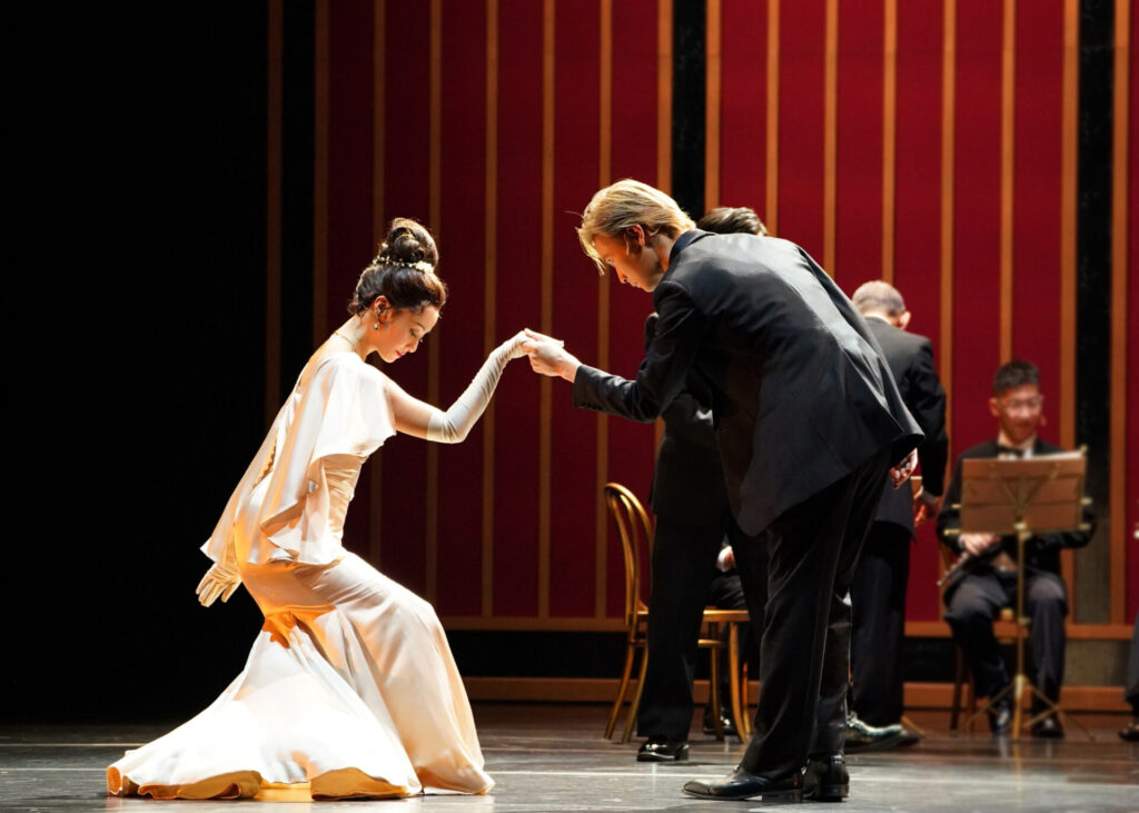橋本良亮さんは、上流階級の長男ながら母と姉に振り回される愛らしさを見せつつ、イライザの真の魅力にいち早く気づくフレディを若々しく、ピュアに演じていきます。