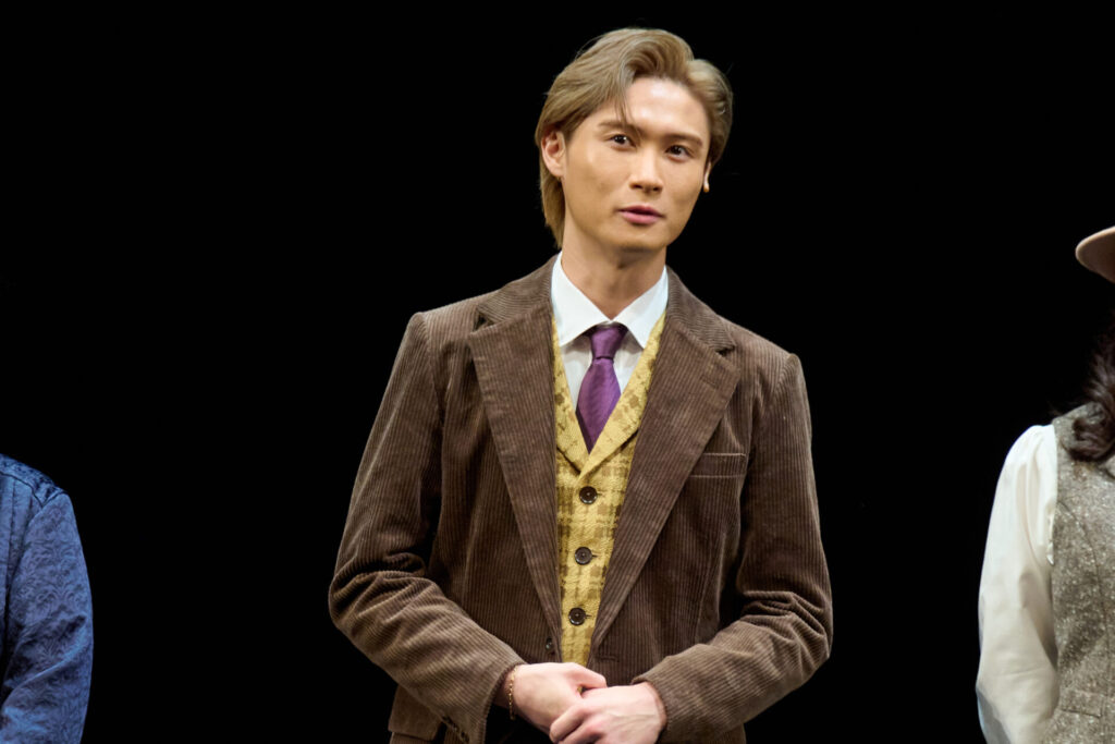 上流階級の家庭で育ったフレディ・エインスフォードヒル役を演じるのは、橋本良亮さん。稽古期間について「風邪を2回引いてしまって、結構な期間、稽古に出られなかったので、その時はちょっと皆さんにご迷惑をおかけしたなと。エリカさんは稽古でも120%でやられるので素晴らしいなと思いましたし、六角さんは舞台の大黒柱と言っても過言ではない存在です。1人1人素敵な方々に囲まれて嬉しいなと思いました」と振り返り、「みんなでワルツを踊るシーンがあるのですが、ワルツを踊ったことがない人が大半で、最初は結構みんなボロボロだったんです。大丈夫かな?と僕も正直心配だったのですが、今となっては凄く良いチームワークでできています。その中でもエリカさんは飲み込みが早くて、最初から完璧で。男性陣が女性陣をリードする場面のはずなのに、エリカさんが男性陣をリードしてくださるような稽古でした」と明かしました。