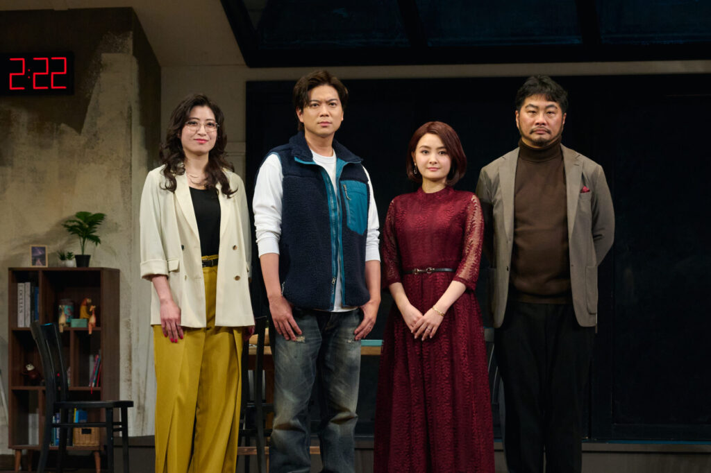 2月6日よりシアタークリエにて開幕の舞台『2時22分 ゴーストストーリー』。ロンドンで2021年に初演以降、世界各地で上演されているホラーサスペンス作品がいよいよ日本初演を迎えます。本作に出演する加藤シゲアキさん、葵わかなさん、南沢奈央さん、松尾諭さんがフォトコールと囲み取材に臨みました。
