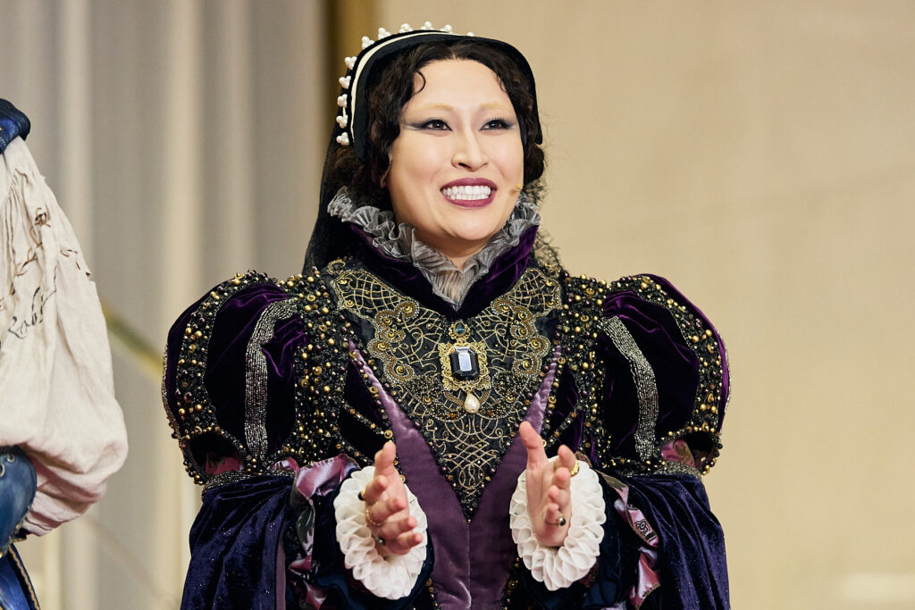 音楽も海外チームの皆さんが来日してくださって、オーケストラから歌のことまで本当に細部にわたって、ここはもっとこうした方がいいんじゃないかと。(小池)先生も脚本をもっとこうした方がいいんじゃないかって毎秒、みんながより良い作品作りにするためにという思いで、私達俳優もそうですけれど、スタッフの皆さんが魂を込めて作ってくださっているので、我々タイトルロールを務めさせていただきますけれども、それぞれのお役も本当にきらびやかな熱のこもった人生を生きているので、ぜひそんな細部にわたってお楽しみいただけたら幸いです」と見どころを熱く語ります。