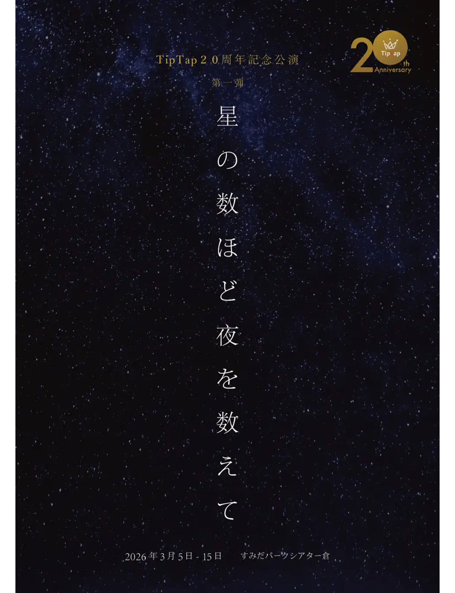 2026年、上田一豪さんが脚本・演出を手掛ける「劇団TipTap」が設立20周年を迎えます。その記念すべきアニバーサリーイヤーの幕開けに選ばれたのが、2023年の初演時に高い評価を得たミュージカル『星の数ほど夜を数えて』です。再演でさらに深まる物語の魅力とキャストについてご紹介します。