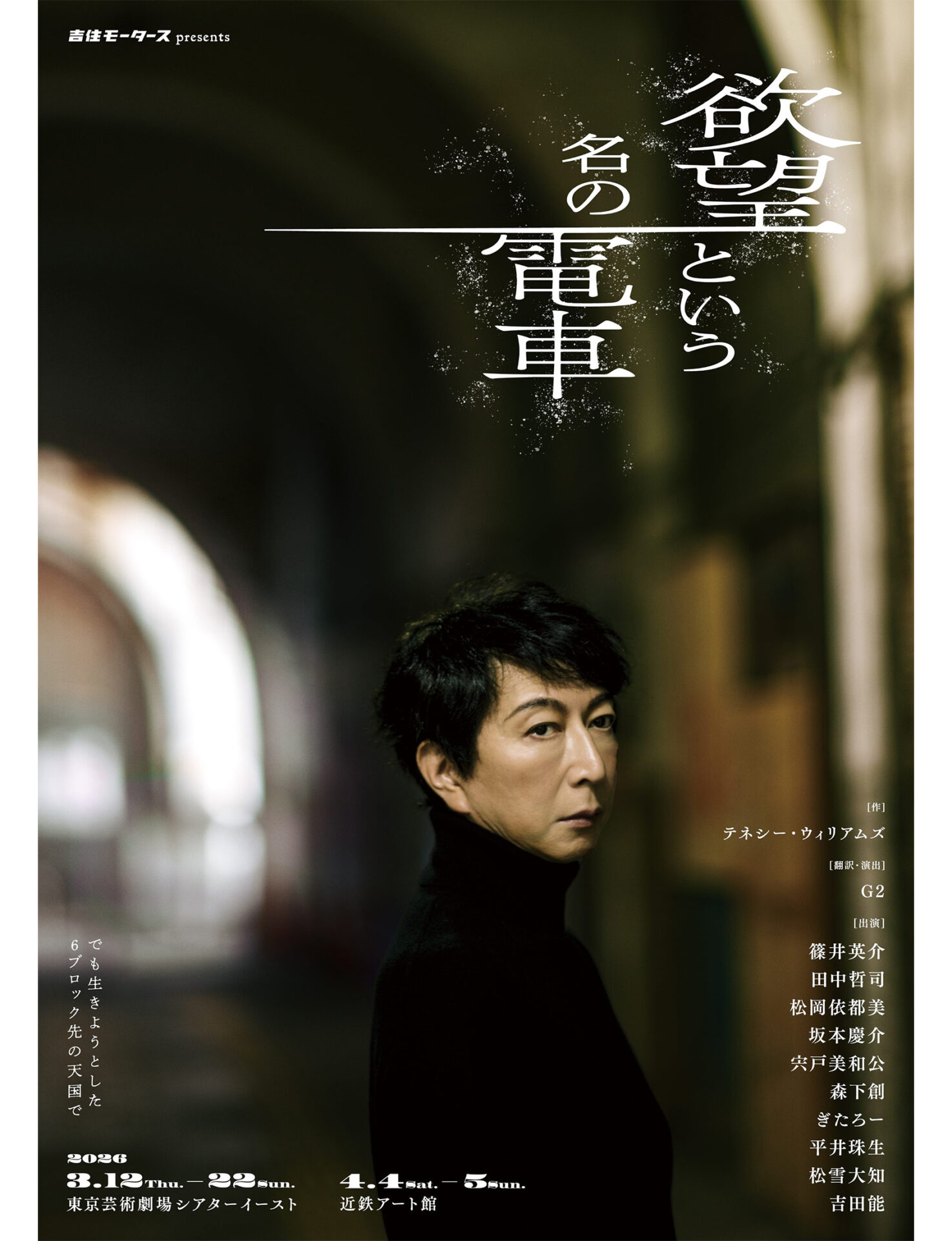 吉住モータースpresents『欲望という名の電車』は、2026年3月12日(木)から22日(日)まで東京芸術劇場 シアターイーストにて上演。4月4日(土)・5日(日)には大阪・近鉄アート館でも上演されます。