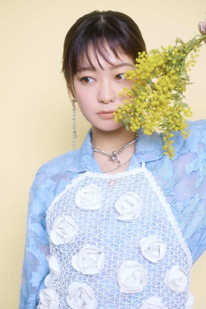 吉柳さんはいつも心の内を静かにオープンにお話してくださるので、お伺いしていても引き込まれます。ロマンティック・コメディということだったのでキュートな雰囲気での撮影をさせていただいたのですが、お花を持って様々な表情を見せてくださりました!