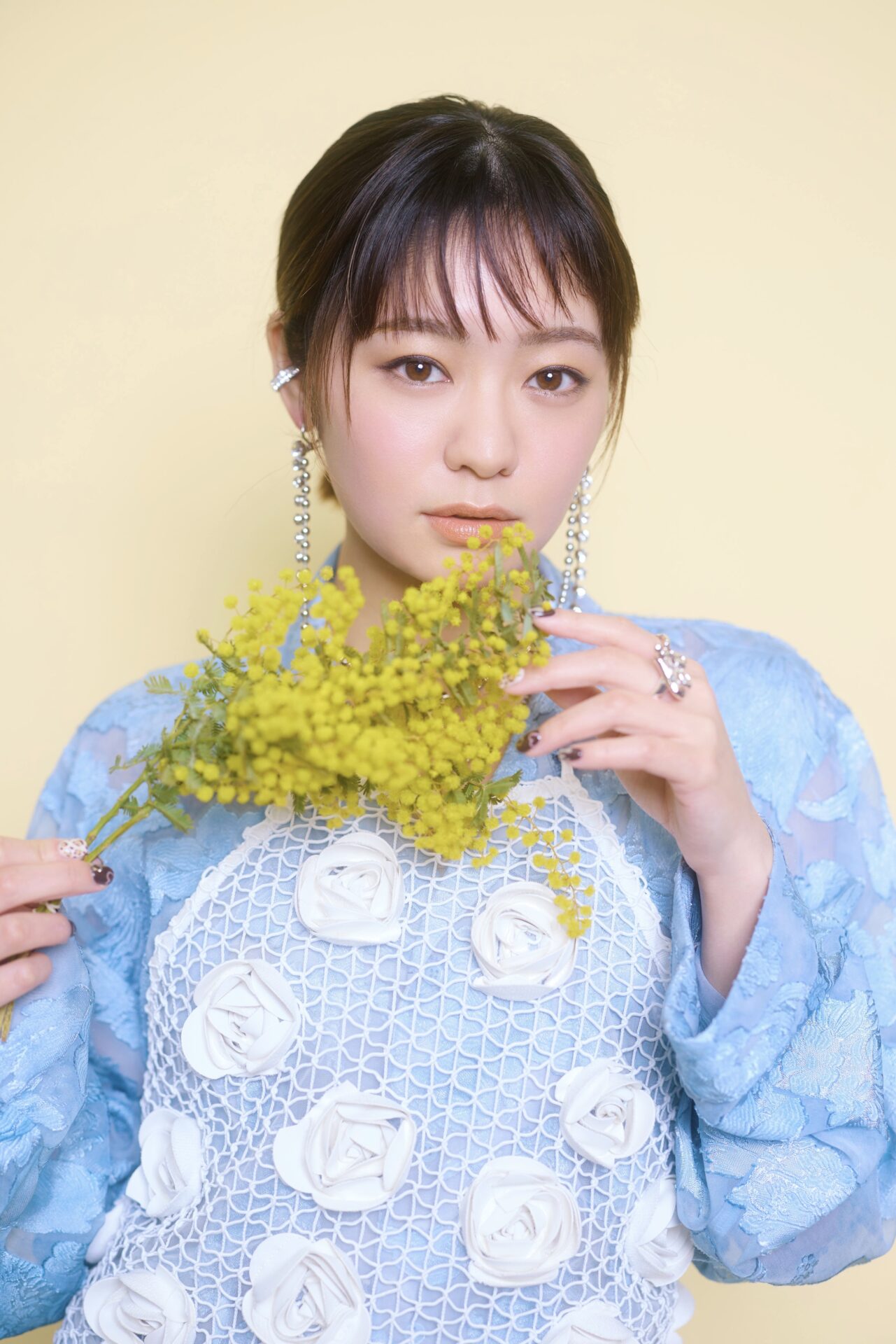 吉柳さんはいつも心の内を静かにオープンにお話してくださるので、お伺いしていても引き込まれます。ロマンティック・コメディということだったのでキュートな雰囲気での撮影をさせていただいたのですが、お花を持って様々な表情を見せてくださりました!
