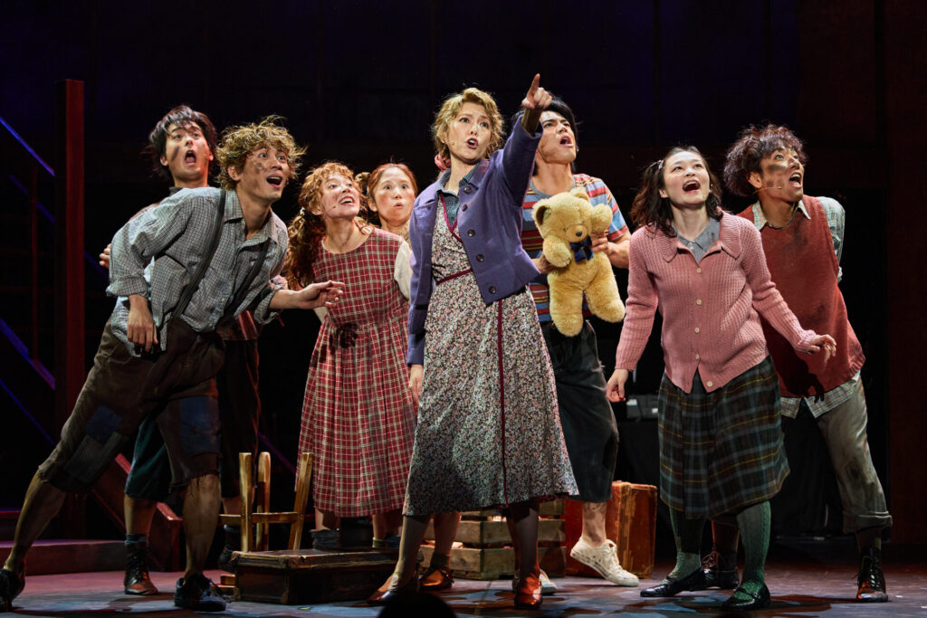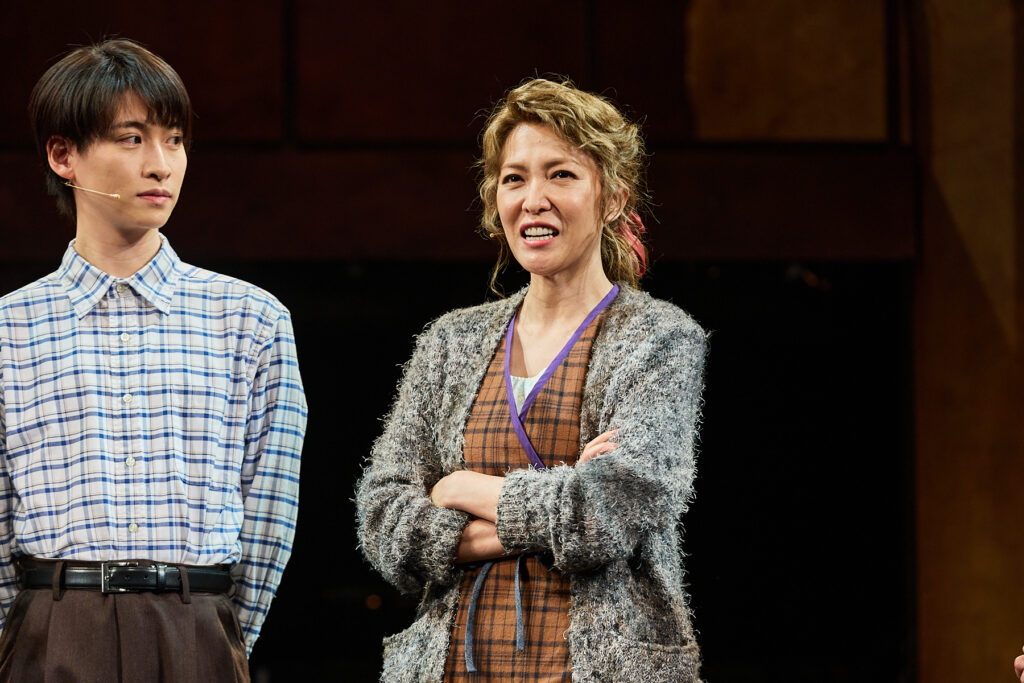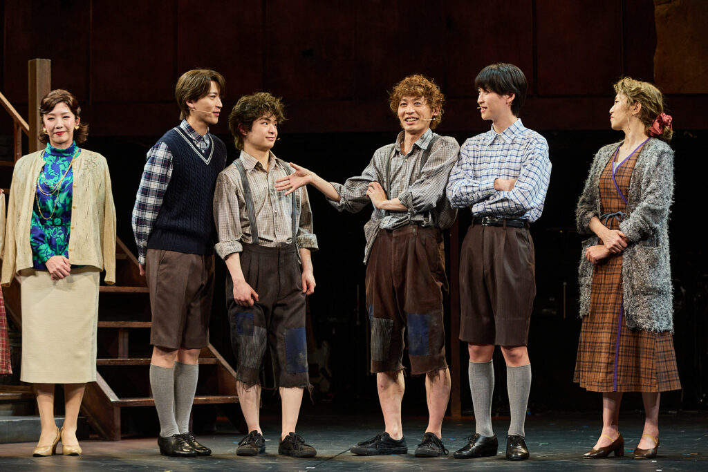ミセス・ライオンズを演じる瀬奈じゅんさんは息子役の4名について「最初の稽古の時は7歳を演じるのを恥ずかしがっているように見受けられて、私も7歳に思えるのかしらと思ったんですけれど、抱きしめたりする時に、普通に大人の男性なんですけど、でもかわいい子供のように思えるように急になって」と語ります。