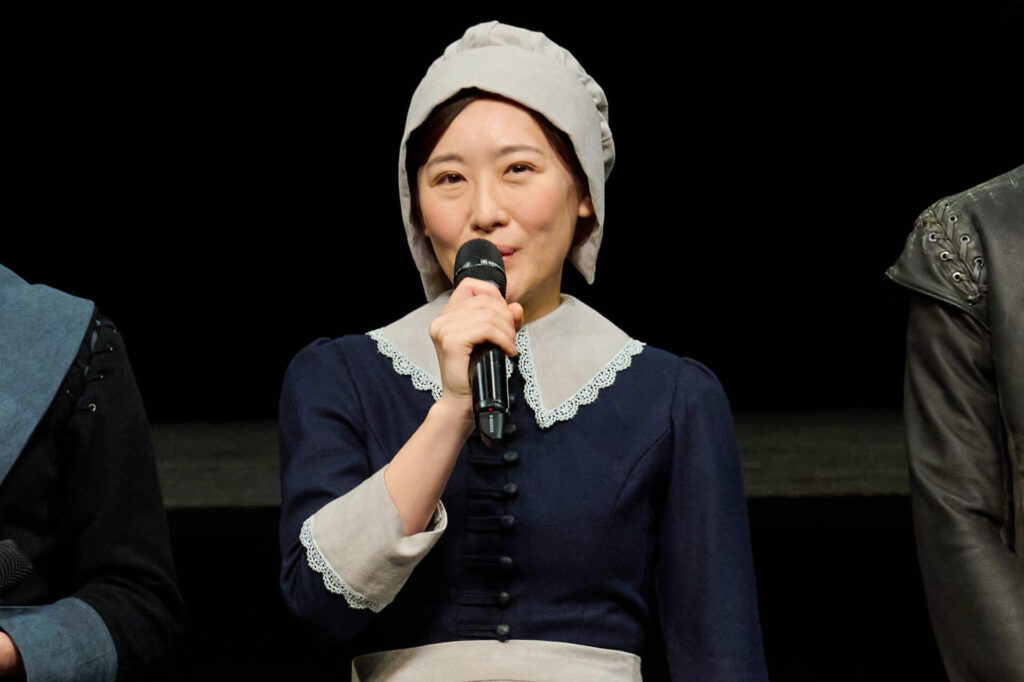 エリザベス・プロクター役を演じる前田亜季さんは、「みんなで稽古でたくさんもがき苦しんで、葛藤したので今は本当に早く初日を迎えたいなとわくわくした気持ちでいっぱい。1953年にアーサー・ミラーが書いた作品ですが、今でも心に響く台詞がたくさんあります。言葉の持つ力の強い作品なので、言葉を大切に伝えていけたら」と語ります。