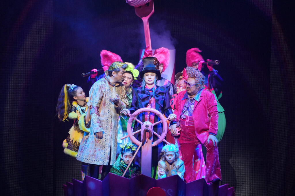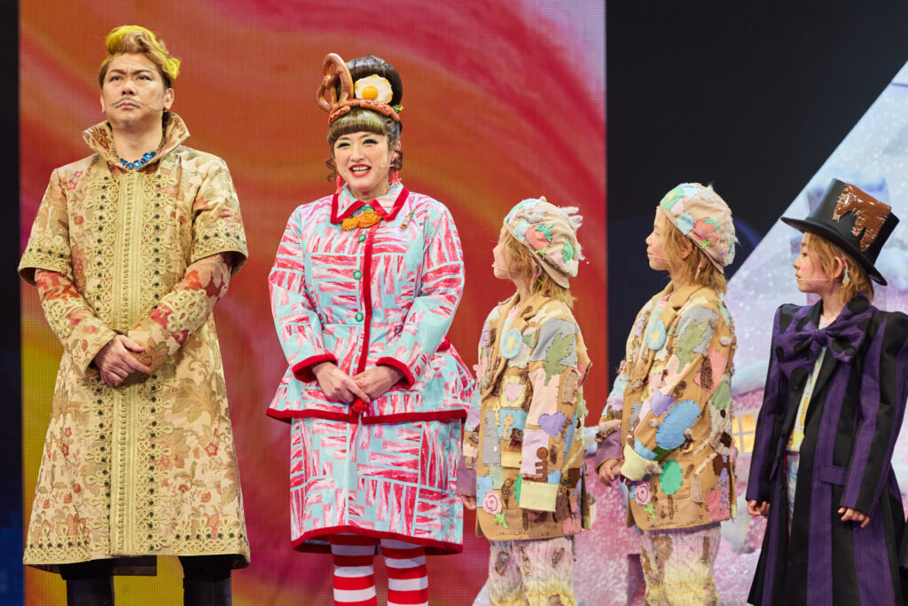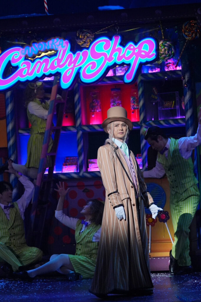 映像、セット、衣裳のカラフルさに加え、初演に引き続きチョコレートの甘い香りが劇場に。一瞬たりとも飽きさせまいと、次々にウォンカのファンタジックな世界観が広がり続けます。