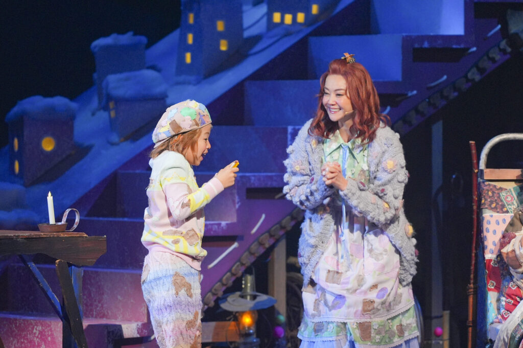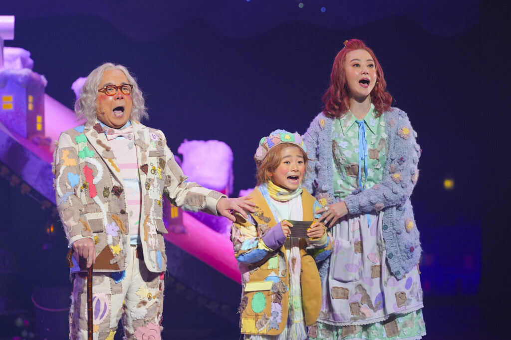 彩吹真央さんは「初演は帝国劇場で上演しましたが、今回は日生劇場ということで、場面によって天井のライトが変わっていて、やっている私たちも自然にイマジネーションの世界に入り込んだ感覚がありました。日生劇場でしか味わえない『チャーリーとチョコレート工場』を楽しんでいただきたい」と語ります。