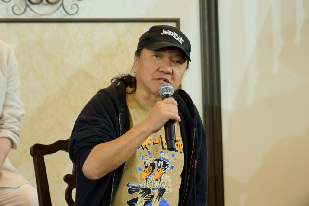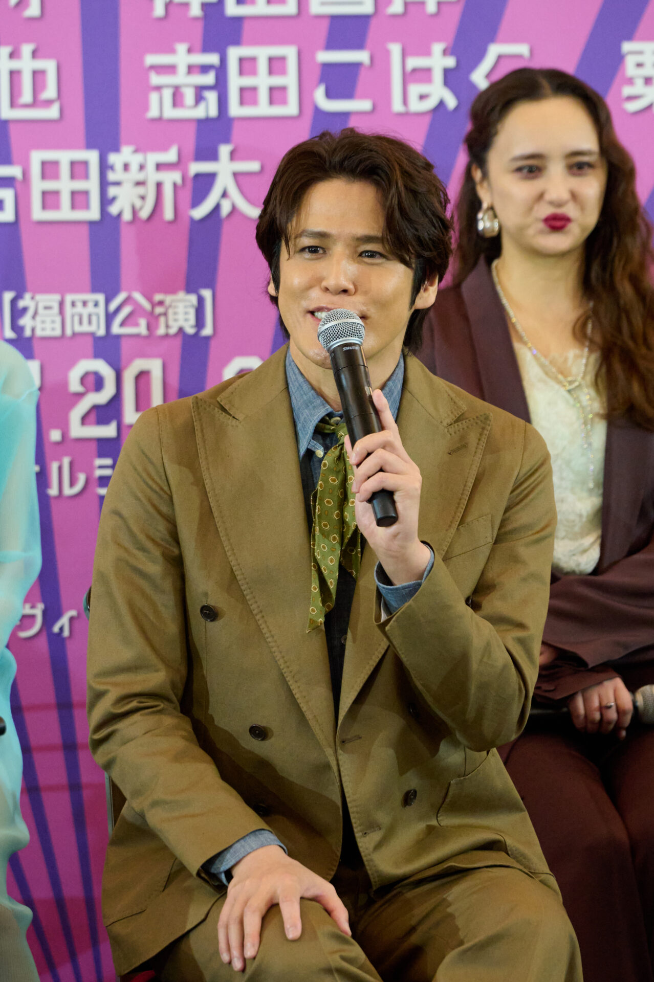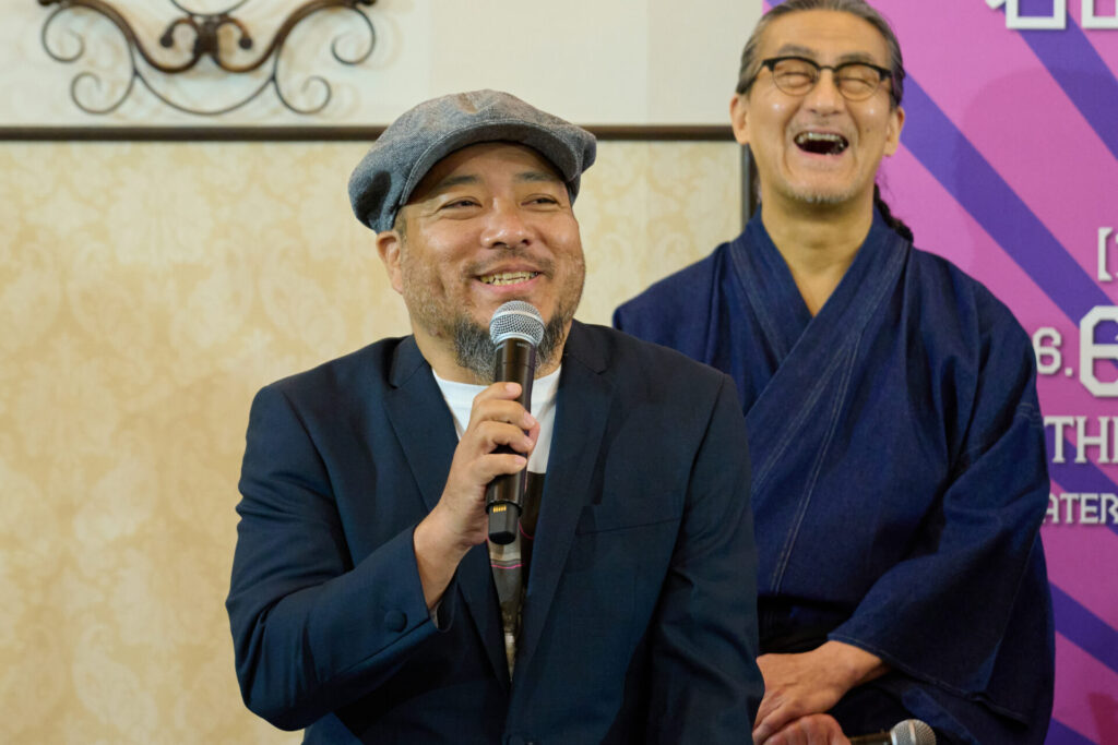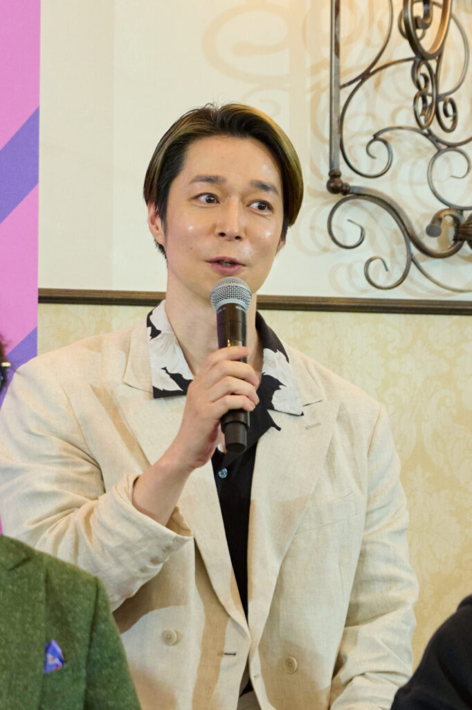 町一番の大富豪で性別不明の怪人アンダルシアン・クーガーを演じる古田新太さんは、「怪人の役しかやったことないのでどうって言われてもどうってことない」とぼやきつつ、「福ちゃんとは新感線では初めてですけど僕は何本か一緒にやっているので、社会派なことは重々知っています(笑)。僕は今違う芝居をやっているのでまだ稽古に参加できていないんですけど、稽古に行ったら3分の2くらいの長さにしたい。ここいらない、ここいらない、とカットしていくから、全部覚えなくていいよ。自分の中でここいらないなと思ったものは省いて大丈夫」とキャストにまさかのアドバイス?!宮野さんに「今から?!(笑)稽古だいぶ進んでいますけど…!」と突っ込まれつつも、「なんとか短くしたい」と古田さんらしい意気込みが語られました。