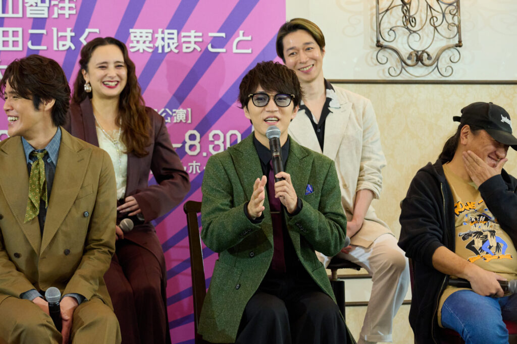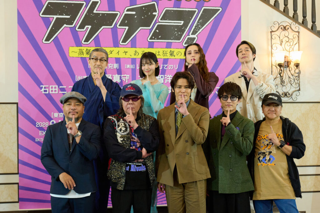 SHINKANSEN☆RSP 怪奇骨董音楽劇『アケチコ!~蒸気の黒ダイヤ、あるいは狂気の島~』の製作発表会見には、脚本の福原充則さん、演出のいのうえひでのりさん、本作に出演する宮野真守さん、神山智洋さん、石田ニコルさん、浜田信也さん、志田こはくさん、粟根まことさん、古田新太さんが登壇しました。