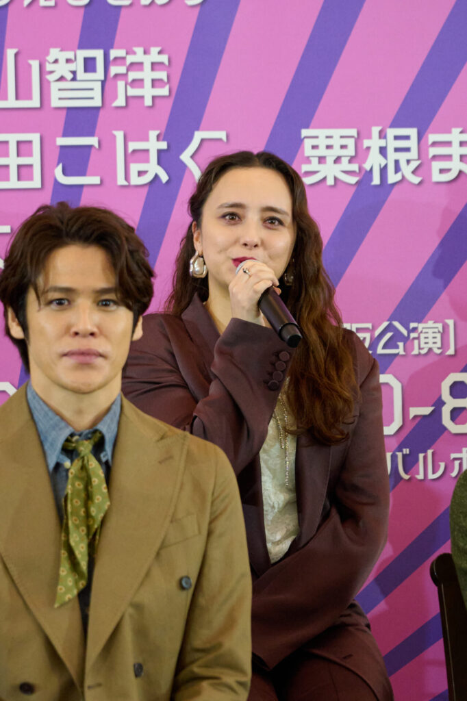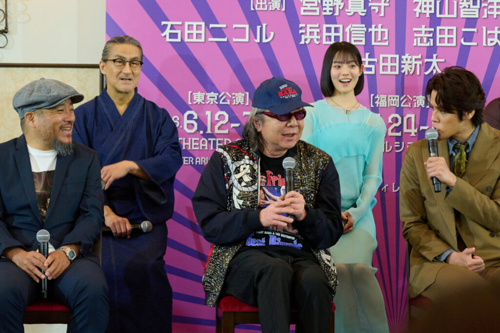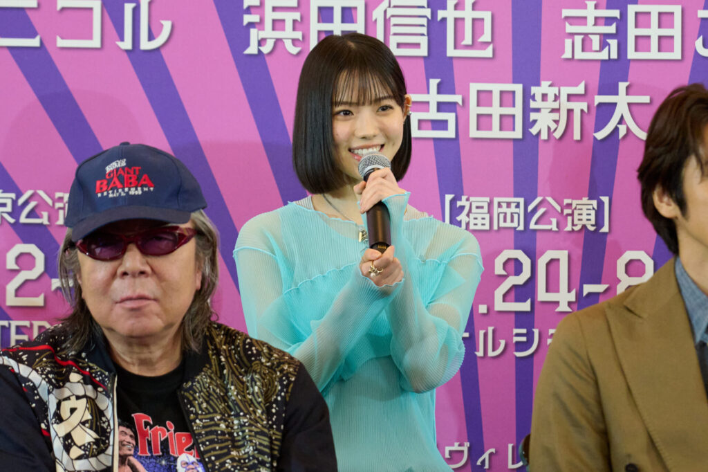 事件が起こる人気劇団「黒ダイヤ歌劇団」の女優・菊川民子を演じる石田ニコルさんは「民子のミステリアスなキャラクターにワクワクします。歌劇団を演じる劇団員の皆さんが本当に面白くて、笑わないようにしなきゃいけないんですけれど、クセ強歌劇団になっています」と語ります。作中には歌劇団のレビューシーンもあるのだそう。また福原さんの脚本について「言葉1つ1つに違和感があったり、音楽にも半音が多かったり。違和感が面白い作品になっている」と語りました。