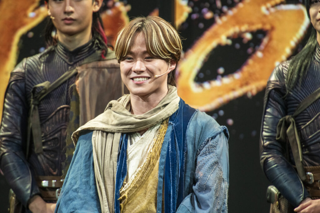 約3年前から構想が練られていたという本作について加藤シゲアキさんは、「その頃はまだコロナ禍の名残りが強く残っていて、そんな中で新設の劇場を作るというお話を聞きました。2020年代前半はエンタメ業界が虐げられた時代でもあったと思うんですけれど、そこからいつか希望に溢れた時代がやってくると信じて、またこの土地が有明というのはすごく縁起の良い名前−実際に有明というのはそういう名前の由来だそうで、夜が明けるようなエンターテイメントを作りたいという思いでした。特に若い世代の方々にとって演劇というのは敷居が高くなっているかもしれませんけれど、気兼ねなく来て楽しんでいただいて、観る側も、演じる側も楽しい舞台を作りたいというのがそもそもの気持ちでした。その思いのまま3年走ってきて、本当にたくさんの方の協力があってどうにかこの日を迎えられて、思いが形になったと信じておりますし、非常に喜びを感じております」と作品にかける深い思いを明かしました。
