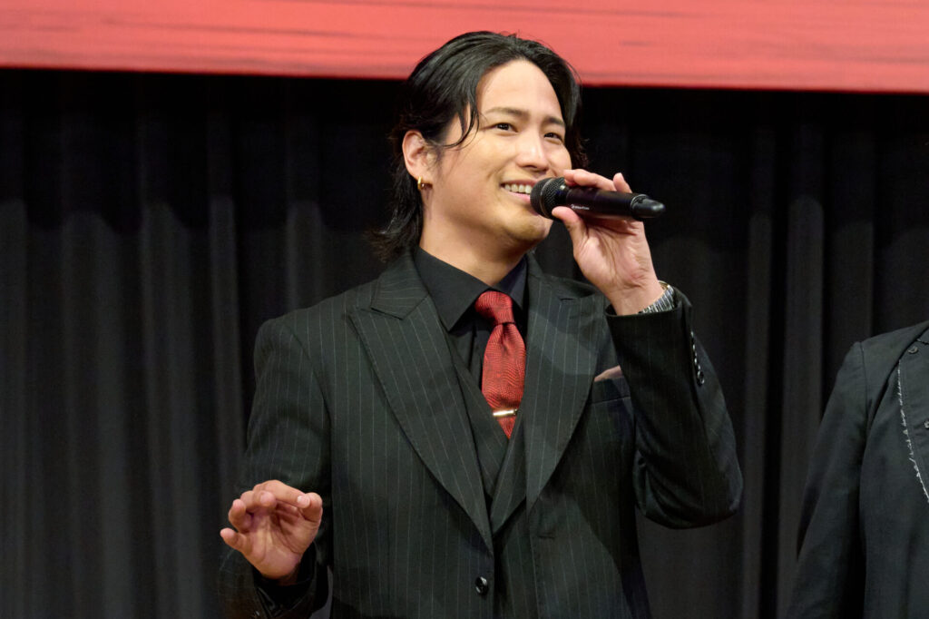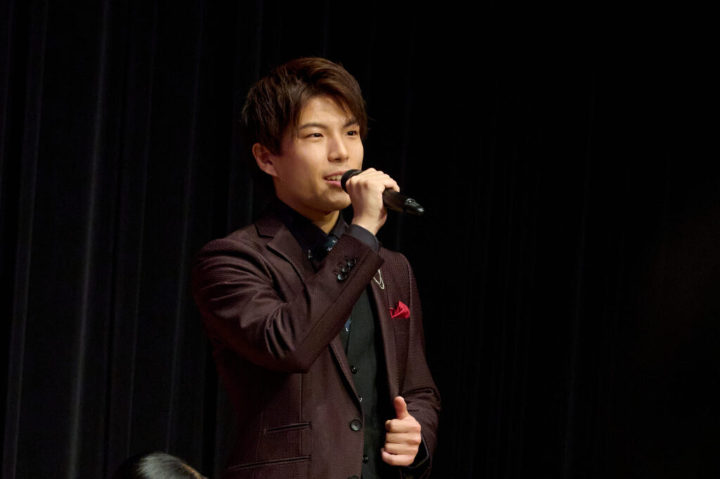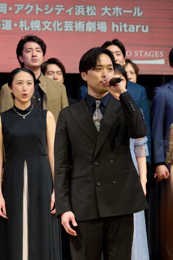 吉田広大さんはお仕事の都合で楽曲披露のみの参加となり、コメントが代読されました。「初めて、この作品に携わらせていただけることに、とても興奮しているとともに、偉大な作品に関われることも、光栄に感じています。実直に作品と向き合い、トゥイとして、ただただ、全力で生きていけたらと思います」。