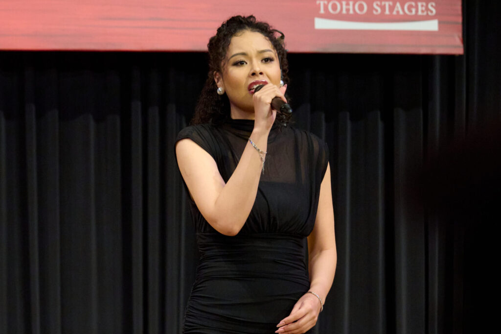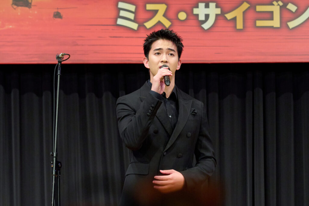 そして、キム役の屋比久知奈さん・清水美依紗さん・ルミーナさん、クリス役の甲斐翔真さん・小林唯さんは、キムとクリスの恋をロマンチックに描いたナンバー「世界が終わる夜のように」を歌唱。